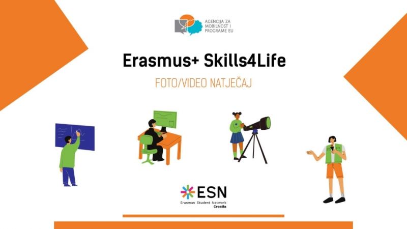 Erasmus studentska mreža Hrvatska u suradnji s Agencijom za mobilnost i programe EU, u znaku Europske godine vještina, organizira foto/video nagradni natječaj "Erasmus+ Skills4Life".