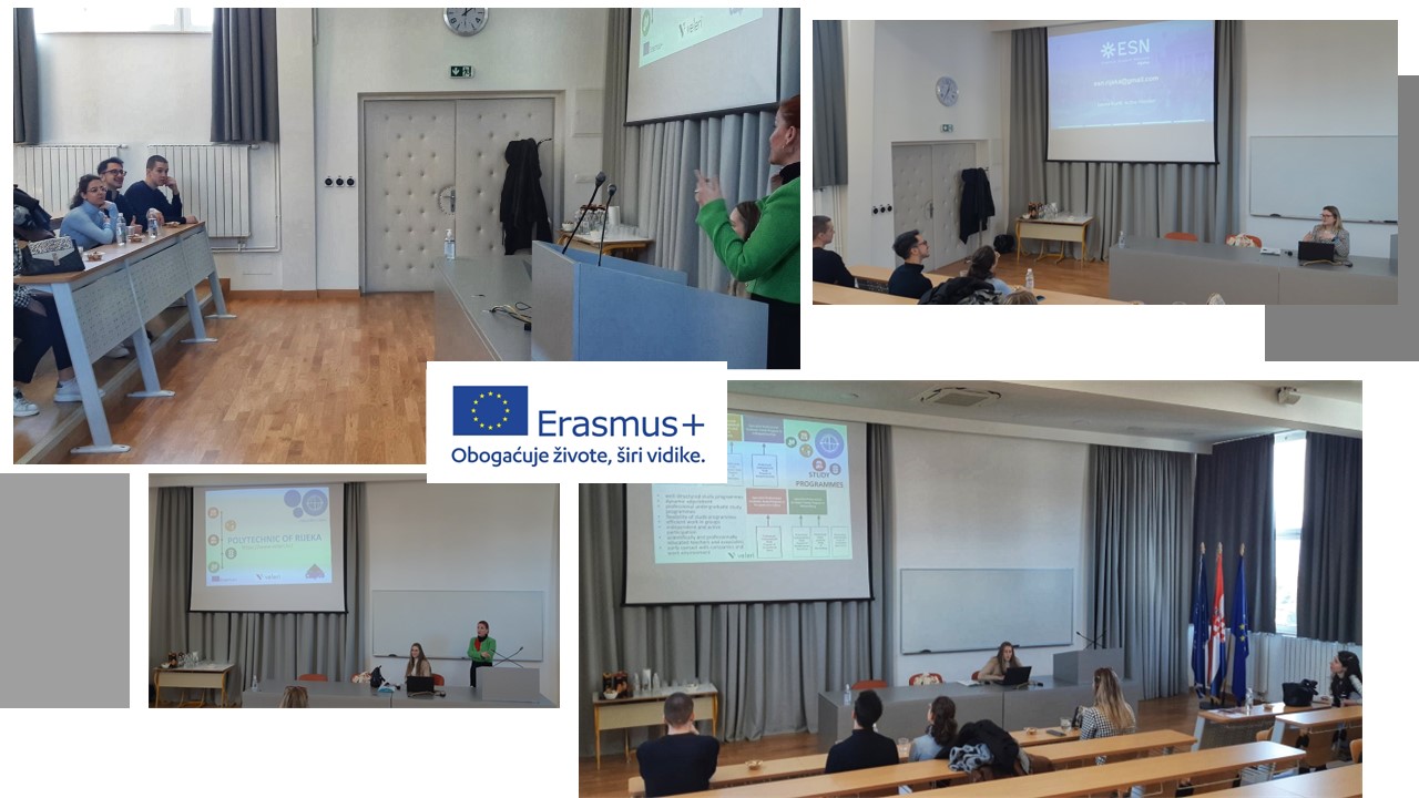 U utorak 28. 2. 2023. održan je Welcome day za dolazne Erasmus+ studente koji će ljetni semestar provesti u Rijeci na studijima Poduzetništvo i Telematika. Studente su pozdravili i poželjeli im dobrodošlicu prodekanica za međunarodnu suradnju Veleučilišta u Rijeci dr. sc. Eda Ribarić Čučković, Erasmus+ koordinatorica Martina Sudac, povjerenice za međunarodnu suradnju dr. sc. Anita Stilin (za Poslovni odjel) i dr. sc. Andrea Andrijašević (za studij Telematika) te Matija Tomšić, ''student buddy''. Predstavnica Erasmus studentske mreže Rijeka, Leona Kurti, predstavila je dolaznim studentima aktivnosti i događanja u organizaciji ESN Rijeka, kao i prednosti sudjelovanja u mreži te im poželjela dobrodošlicu i pozvala ih da im se pridruže.