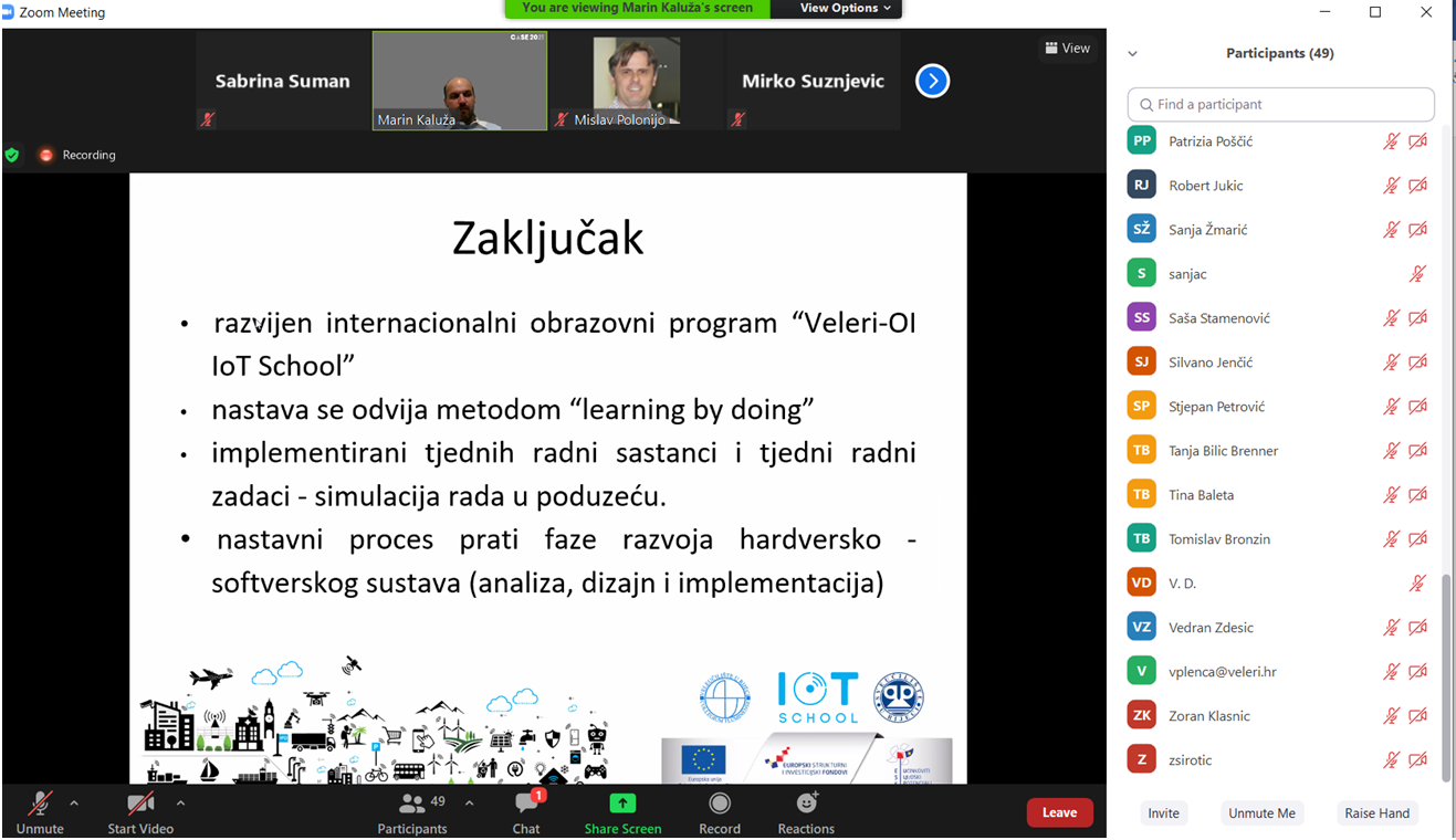 Održana završna konferencija EU projekta “Razvoj internacionalnog obrazovnog programa Veleri-OI IoT School”