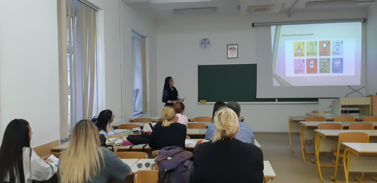 Dr. sc. Anna Mravcova studentima Poduzetništva u okviru kolegija Menadžment te studentima Sigurnosti na radu u okviru kolegija Gospodarenje otpadom predstavila je temu Sustainable development in the era of environmental crisis pojasnivši koncept održivog razvoja s posebnim naglaskom na razvoj održivih ciljeva koje su definirali Ujedinjeni narodi, i to 8 ciljeva (Millennium Development Goals) za razdoblje do 2015. godine te 17 ciljeva (Sustainable Development Goals) za razdoblje do 2030. godine. U okviru izlaganja obuhvaćene su i sljedeće teme: Individual environmental responsibility and its limits te The need for sustainable human retreat.