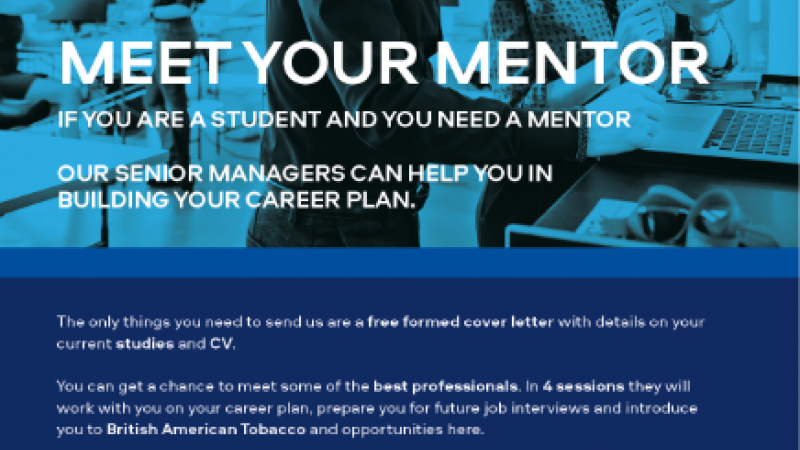 “Meet Your Mentor” program bazira se na uparivanju studenata s jednim od senior menadžera naše kompanije, koji zatim prenose svoje iskustvo i usmjeravaju studente u njihovim poslovnim planovima kroz četiri online sastanka. Posljednji je sastanak oblikovan kao simulacija razgovora za posao, nakon kojeg studenti od mentora dobivaju detaljnje povratne informacije.