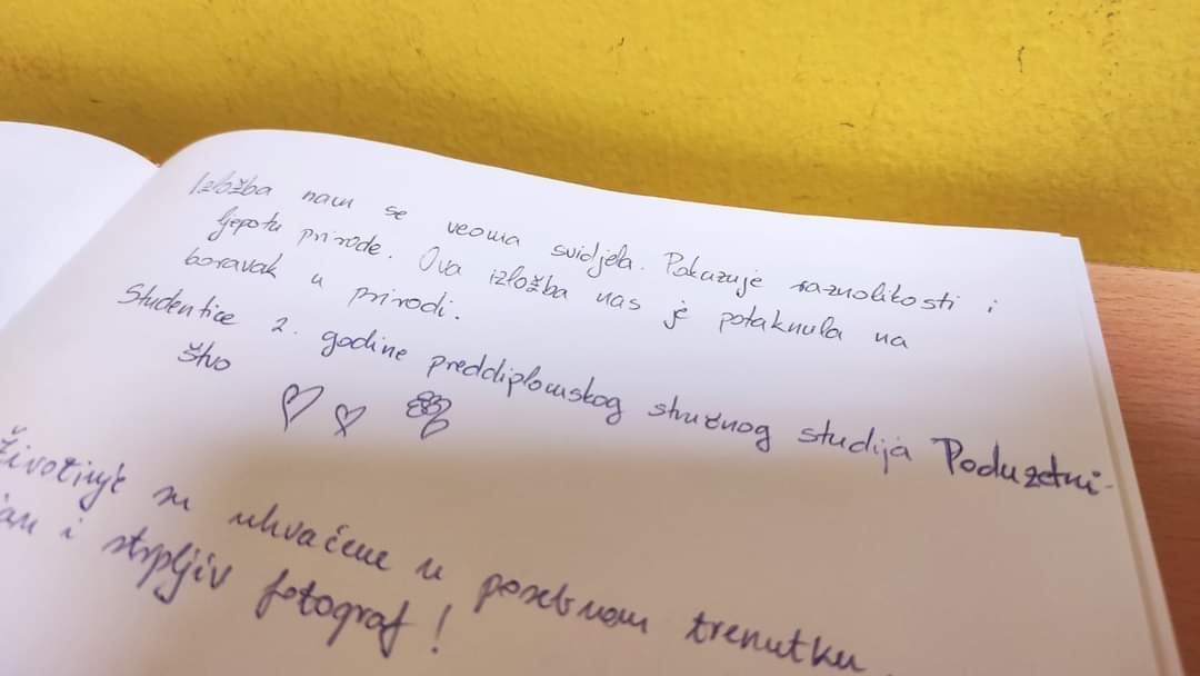 Izložba fotografija Davorina Jurovića razveselila je mnogobrojne studente i zaposlenike Veleučilišta, a izložbu su razgledali i gosti te zainteresirana javnost. Vesele lijepe riječi u knjizi dojmova, a neke od njih kažu sljedeće: "Izložba nam se veoma svidjela. Pokazuje raznolikosti i ljepotu prirode. Ova izložba nas je potaknula na boravak u prirodi. Studentice 2. godine preddiplomskog stručnog studija Poduzetništvo".