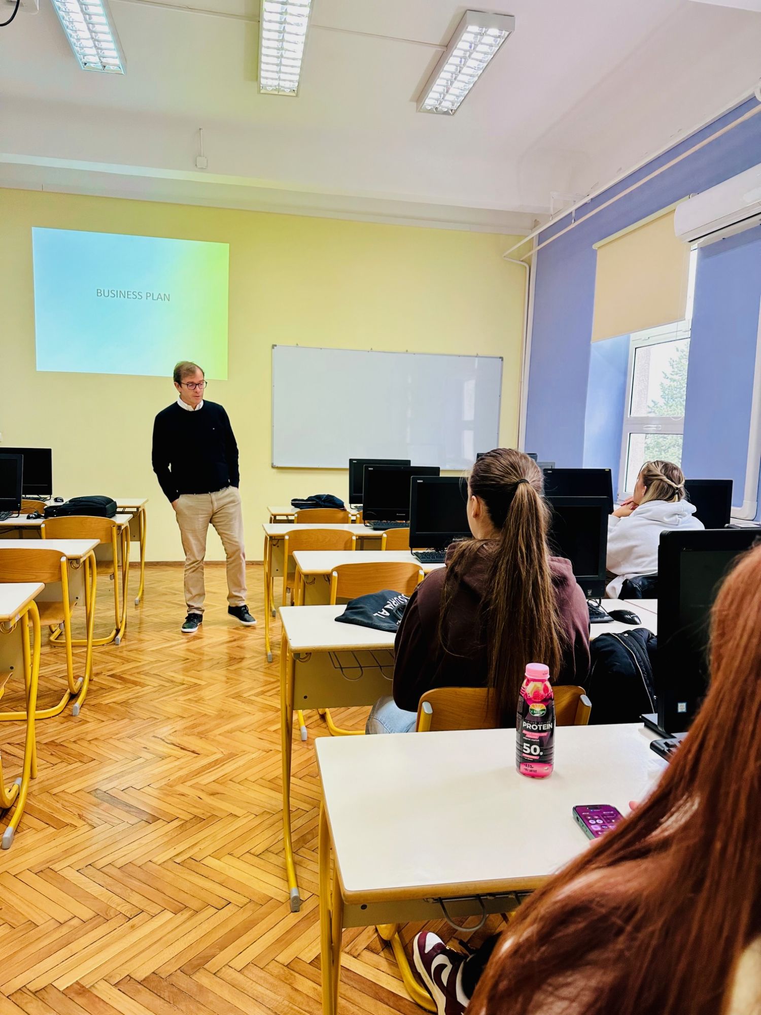 U okviru programa Erasmus+ profesor Fernanda Teixeira s IPBeja - Instituto Politécnico de Beja (Portugal) održao je 18. listopada 2023. predavanje na kolegiju Upravljanje malim i srednjim poduzećima. Tema predavanja bila je izrada Poslovnog plana, odnosno, implikacije izrade poslovnog plana - za koga se poslovni plan izrađuje, koje su njegove glavne sastavnice te značaj tih sastavnica. Osim toga, gostujući profesor ima iskustva u praksi osobitno na području financijskih tržišta - tržišta kapitala, jer je radio u banci i na području IPO-a (početne ponude dionica).