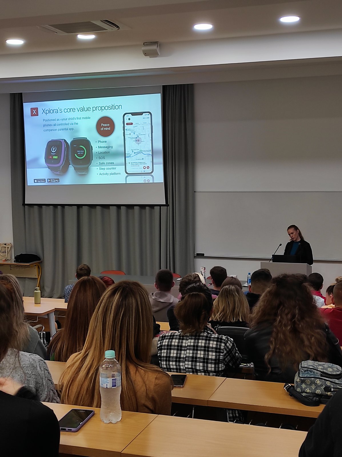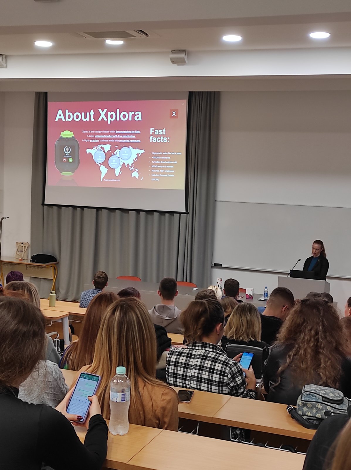 Gostujuće predavanje u okviru Erasmus+ programa mobilnosti održala je 30. listopada 2023. Lara Schumann iz tvrtke Xplora Technologies AS, Norveška. Tijekom izlaganja gospođa Schumann je predstavila svoju tvrtku kao europsku multinacionalnu tehnološku tvrtku koja je specijalizirana za proizvodnju i prodaju pametnih satova za djecu, softver i usluge. Tvrtka je osnovna 2016. godine, a sjedište tvrtke nalazi se u Oslu. Misija tvrtke je siguran ulazak djece u digitalni svijet te bolja ravnoteža između vremena provedenog pred ekranom i fizičke aktivnosti. Tvrtka zapošljava više od 100 zaposlenika te posluje na 22 globalna tržišta. Predavačica je predstavila ciljeve i strategije tvrtke te pojasnila na koji način ostvaruje visok rast o čemu svjedoči rast prodaje 24 puta u posljednje četiri godine. Osim toga, predavačica je podijelila svoje iskustvo rada u jednoj propulzivnoj kompaniji te izazovima s kojima se susreće u poslovanju te suradnji s klijentima na različitim tržištima i radeći u okruženju koje uključuje zaposlenike iz različitih zemalja.