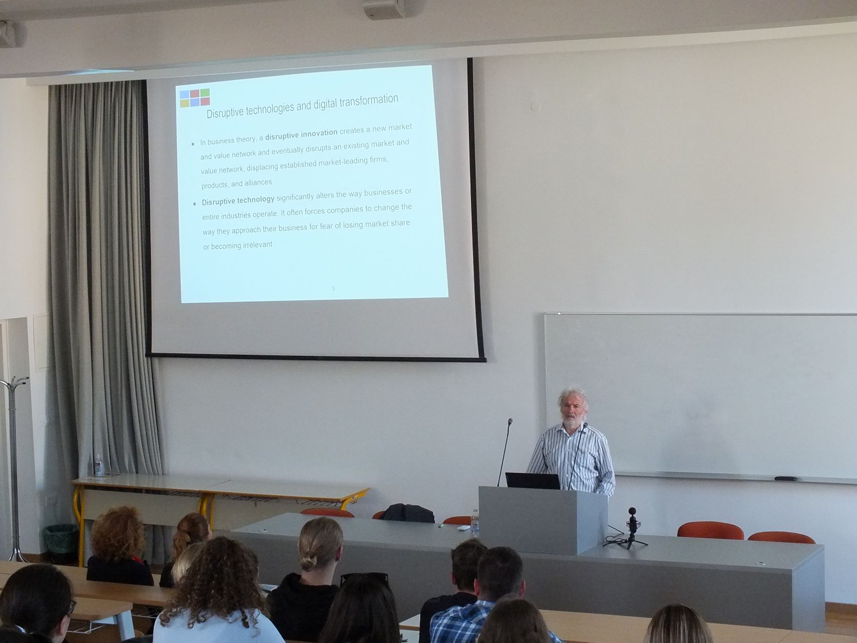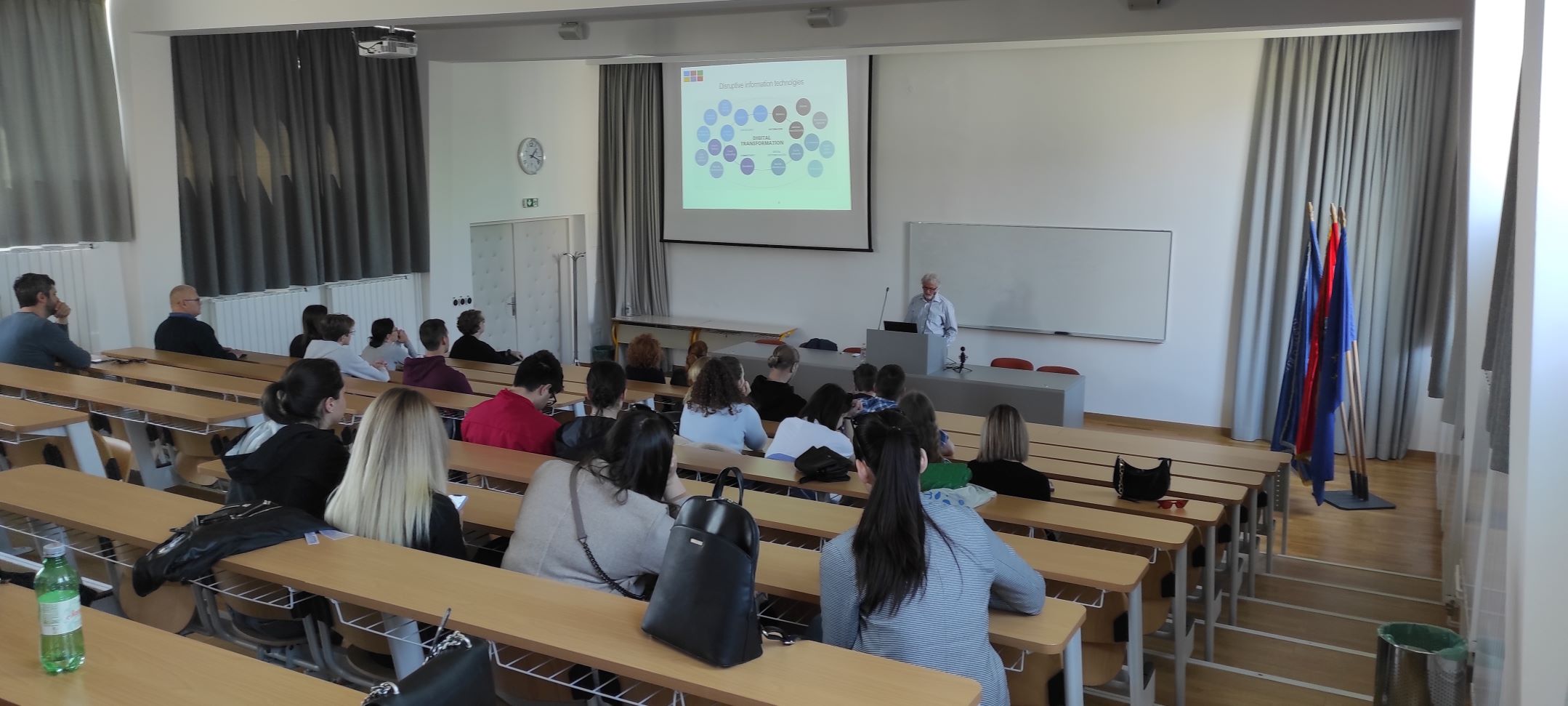U srijedu, 20. travnja 2022. na Poslovnom odjelu u Rijeci održano je Erasmus+ gostujuće predavanje u okviru kolegija Elektroničko poslovanje za studente stručnih studija Informatika i Poduzetništvo. Predavanje na temu digitalne transformacije održao je redoviti profesor dr. sc. Samo Bobek s Ekonomsko-poslovnog fakulteta Sveučilišta u Mariboru, Slovenija.