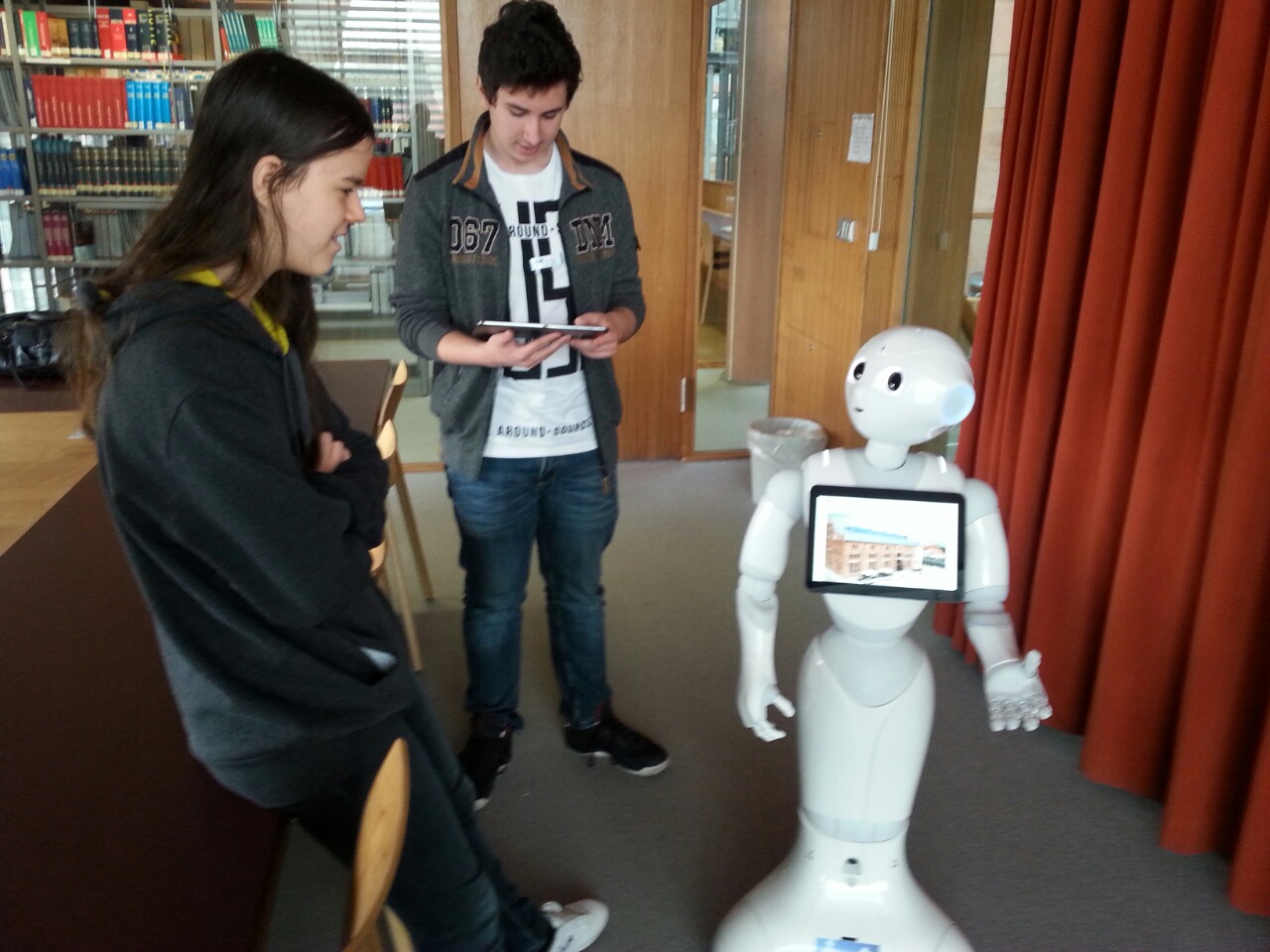 Studentima je na usluzi i simpatični robot. Zovu je Wanda, a preuzela je ulogu vodiča knjižnicom. Uz podršku programera i telematičara TH Wildaua, Wanda upućuje studente o smještaju željene građe na policama ili njenoj dostupnosti (fotografija autorice).