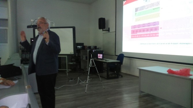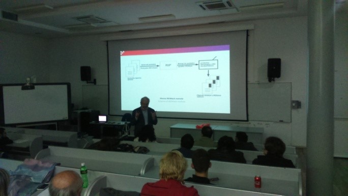 Velik interes je izazvalo plenarno predavanje, za sve studente i nastavnike, vezano za rad i istraživanja dr.sc. Pogarčića u području Infrared dizajna i bilo je popraćeno makedonskim motivima i infrared fotografijama poznatih makedonskih ličnosti, povijesnih i aktualnih. (vezano djelomično za temu: Medium for efficient computation - tema: Ird Patent In General). Prof. Polak drži sliku na kojoj se vidi sv. Majka Terezija, a pod infra crvenom svjetlosti je portet pjevača Toše Proeskog – oboje makedonci.
