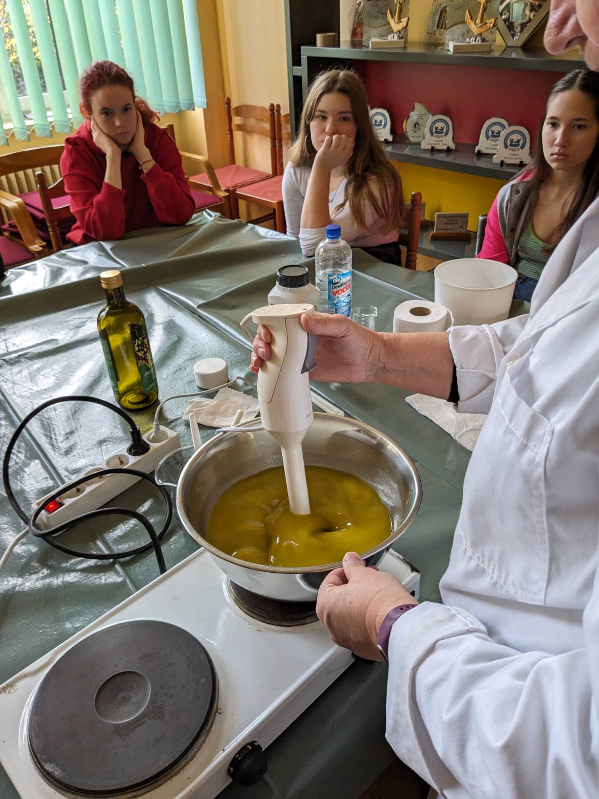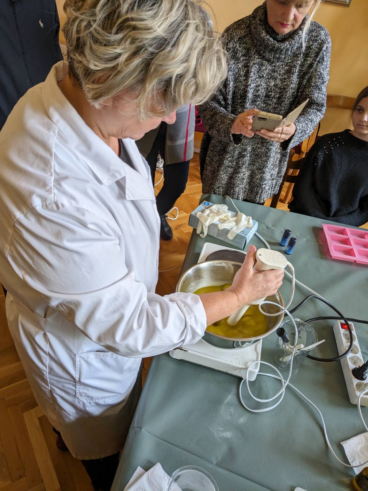 Drugi dio programa radionica je obuhvatio izradu sapuna hladnim postupkom od maslinovog ulja u prostorijama doma. Za aromatiziranje sapuna korišteno je eterično ulje cvijeta lavandina iz vrta učeničkog doma prethodno dobiveno destilacijom pomoću mini destilatora na Veleučilištu u Rijeci. Naime, Veleučilište u Rijeci i Učenički dom Podmurvice potpisali su u lipnju ove godine sporazum o suradnji te je Učenički dom Podmurvice promoviran u tehnološku bazu za potrebe odrađivanje prakse i praktičnih vježbi u vrtu učeničkog doma. Osim destilacije eteričnih ulja na Veleučilištu u ljetnom periodu i provedbe ovih radionica, početkom zimskog semestra u Učeničkom domu Podmurvice održane su i prve terenske vježbe za studente Održivog agroturizma.