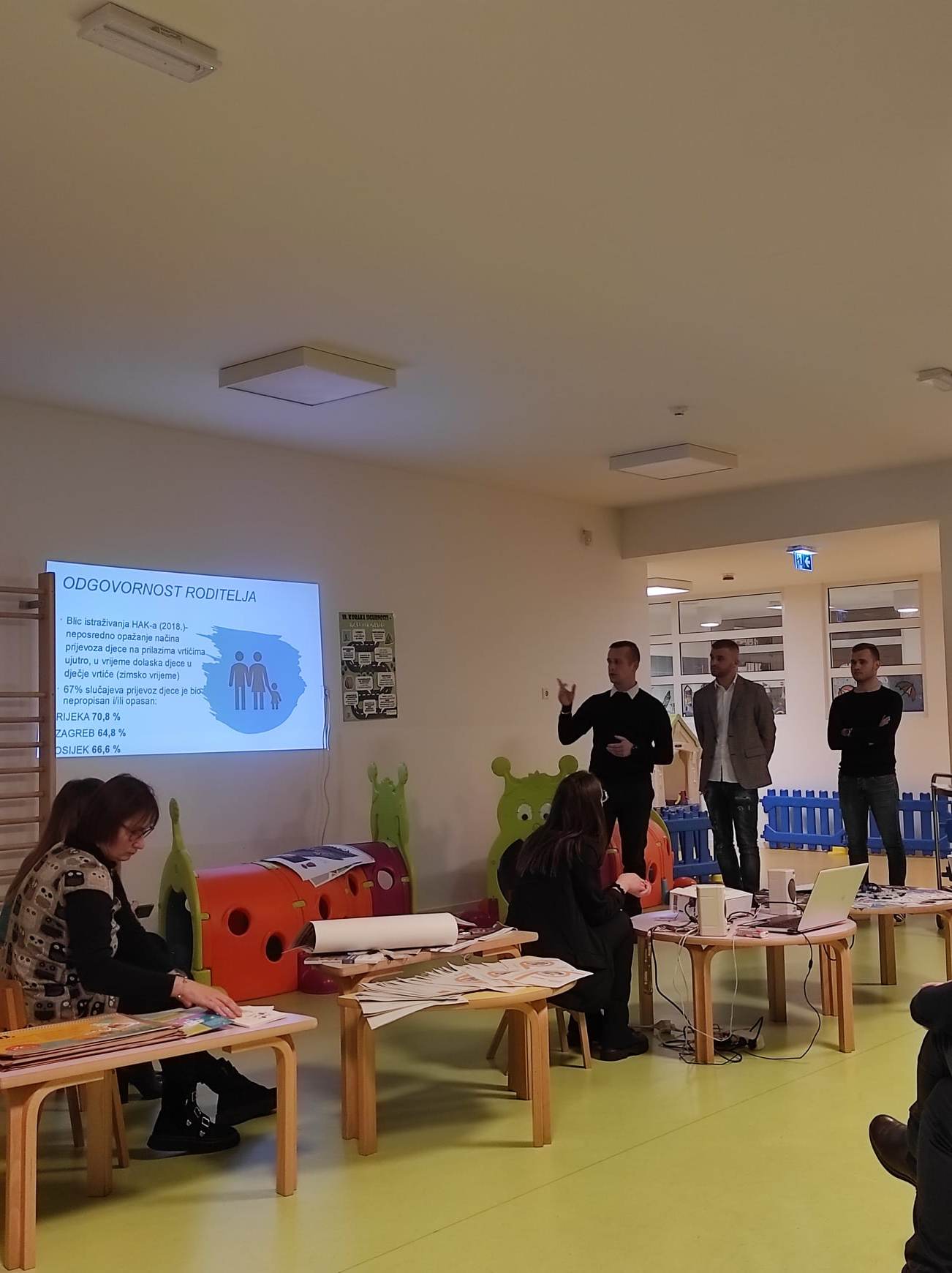 Izrađene materijale studenti su prezentirali u sklopu navedene edukacije s ciljem pokazivanja primjera osnaživanja roditelja za prometni odgoj djece.