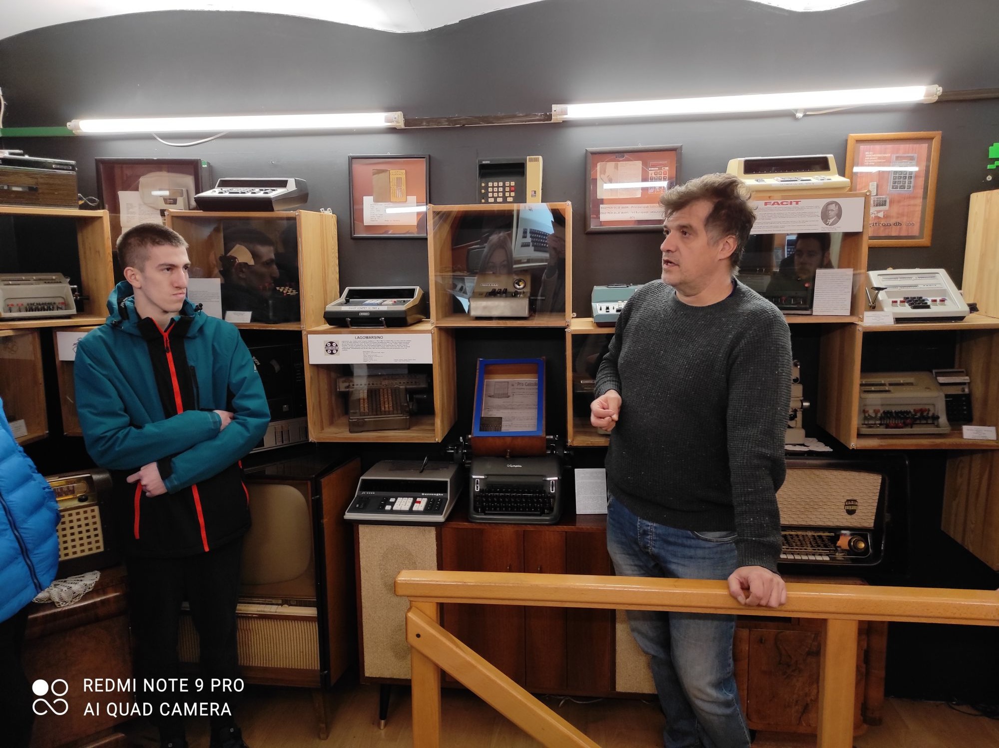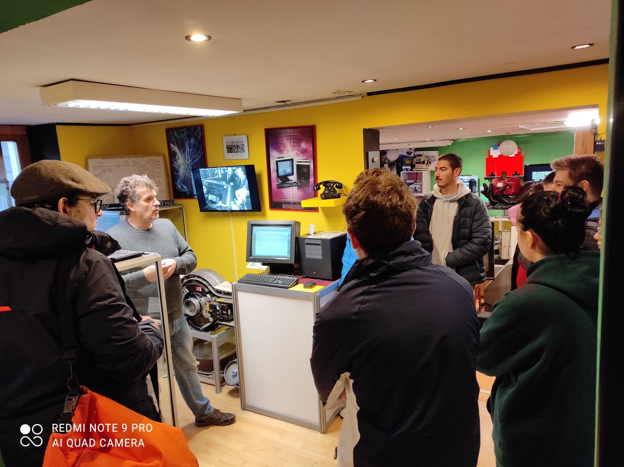 U muzeju su studenti imali priliku vidjeti primjerke bušenih kartica, tvrdih diskova, radnih memorija te prvih osobnih računala. U nastavku obilaska, voditelj muzeja, g. Svetozar Nilović, upoznao je studente s poviješću izrade računala i kalkulatora na našim prostorima te sa starim medijima za pohranu audio i video materijala.