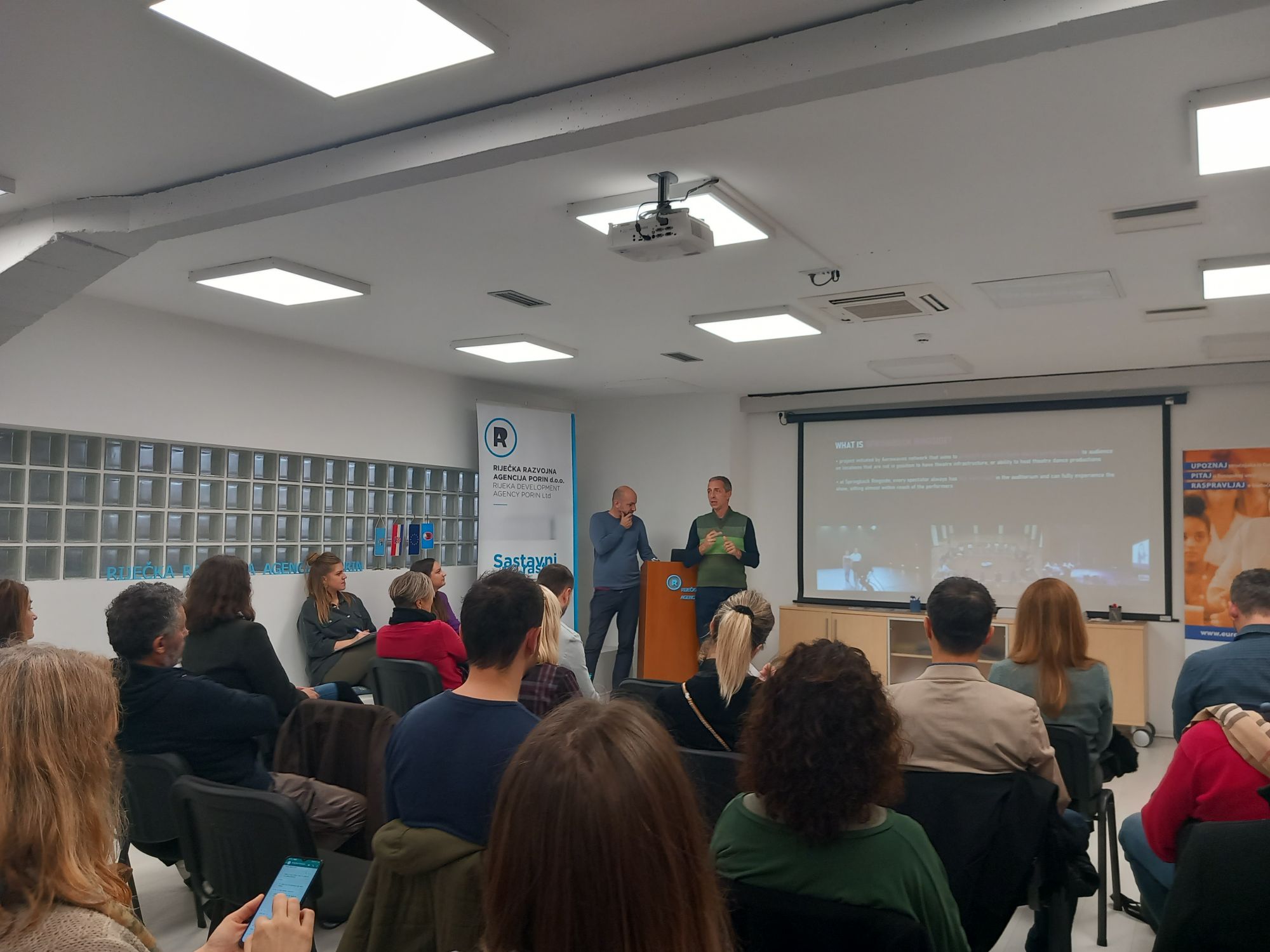 U sklopu terenske nastave na kolegiju Proizvodni i operativni menadžment dana 16. 12. 2022. redoviti i izvanredni studenti stručnog prijediplomskog studija Poduzetništvo sudjelovali su na četvrtom po redu događanju TORPEDO DAYS 04 na temu „Tranzicijski put u Digitalno i Zeleno“ u prostorima Proizvodnog parka Torpedo u Rijeci. Glavni organizator događanja Riječka razvojna agencija Porin d. o. o. povezala je na ovom događanju različite industrije i akademski sektor s novim tehnologijama. Sudionici događanja bili su predstavnici sveučilišta, veleučilišta te javnog i privatnog sektora koji su imali priliku iznijeti svoja razmišljanja s obzirom na potrebe i mogućnosti razvoja primjenom novih tehnologija. Studenti su imali priliku vidjeti i čuti predstavljanja različitih projekata koji su provedeni ili se provode na području Primorsko-goranske županije, a odnose se na primjenu novih tehnologija u poslovanju, javnom te kulturnom djelovanju. Među zanimljivim izlaganjima studenti su imali priliku obići Proizvodni park Torpedo te se pobliže upoznati s njihovim djelovanjem, rasponom usluga te opremom koju imaju na raspolaganju korisnici Proizvodnog parka (3D printeri, 3D skeneri,…). Posebnu je pažnju sudionika privukla VR simulacija kazališnog plesa u okviru projekta Springback Ringside, čiji su kratki prikaz mogli „osjetiti“ i sudionici događanja.