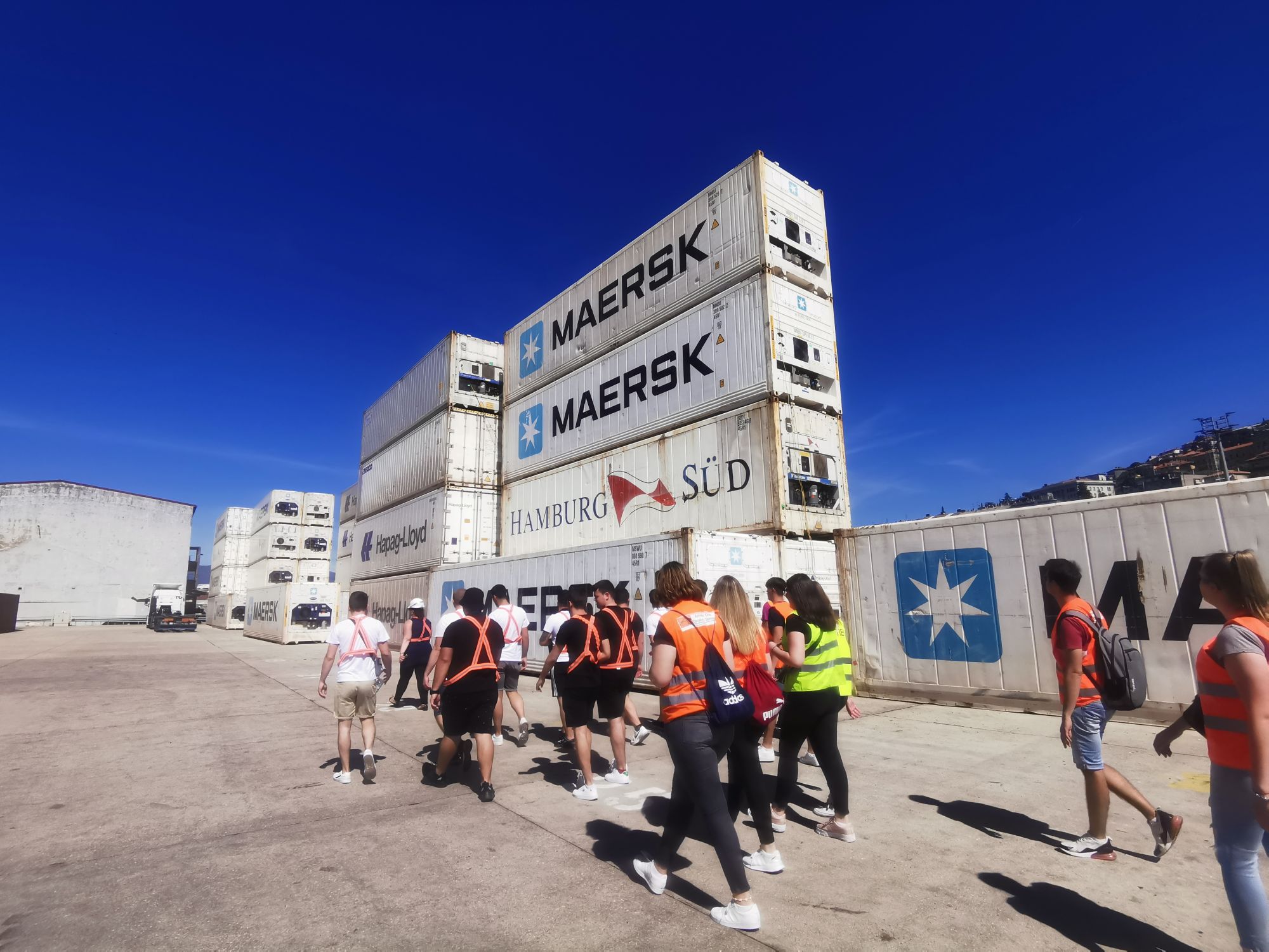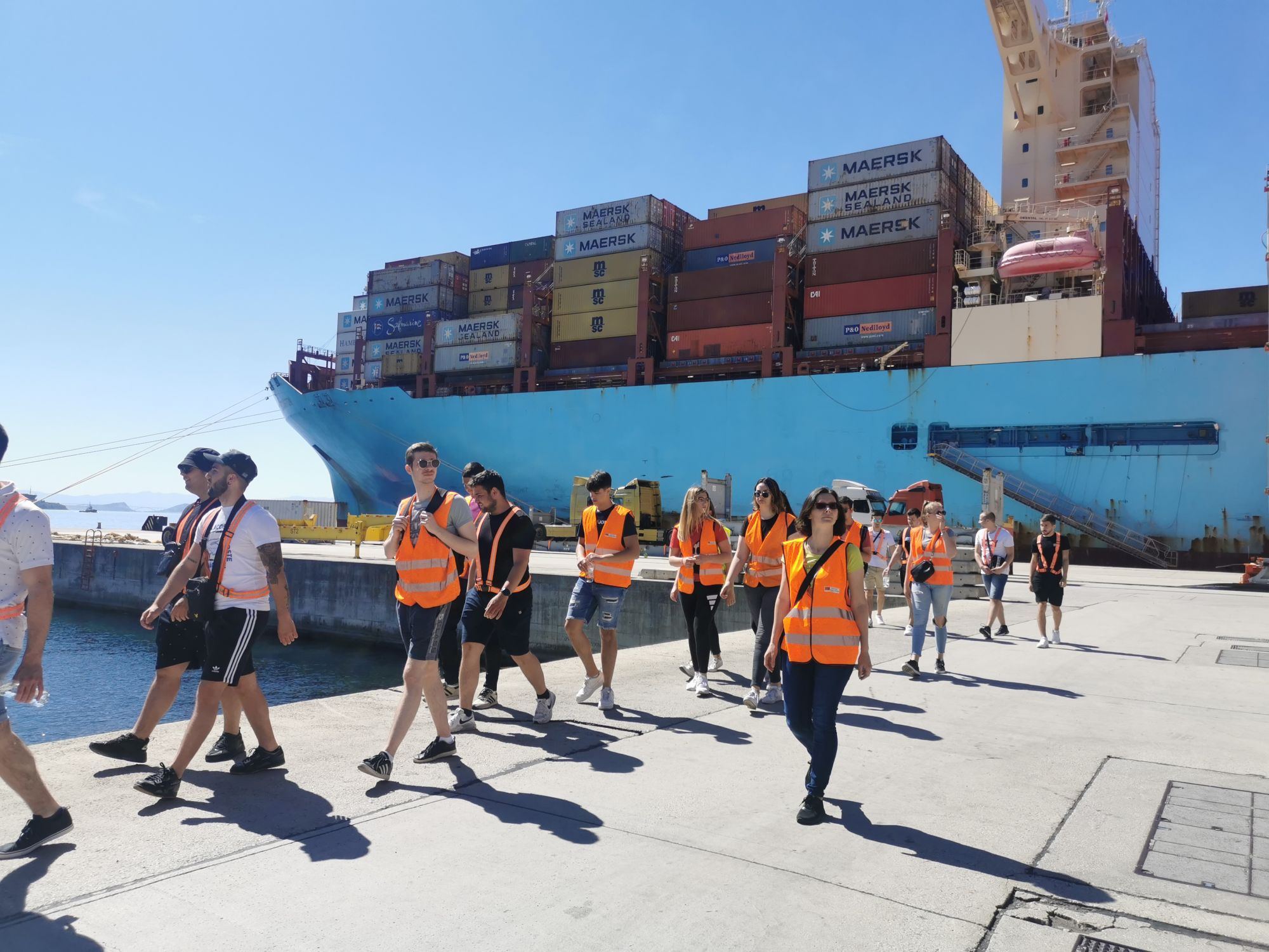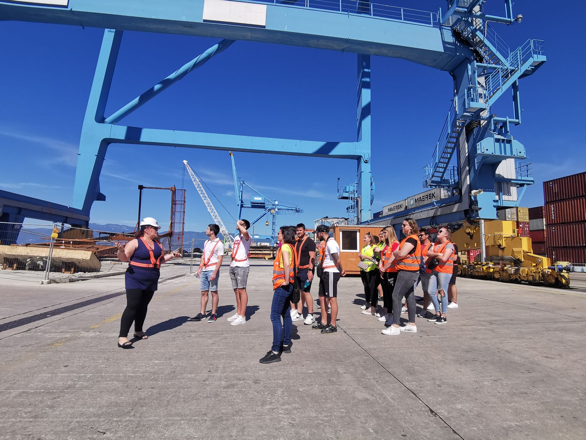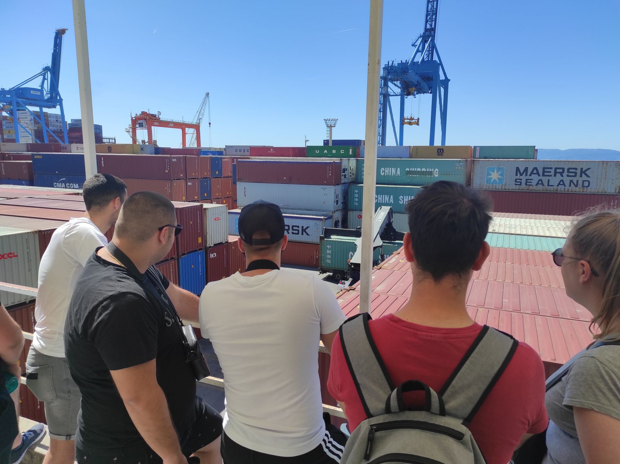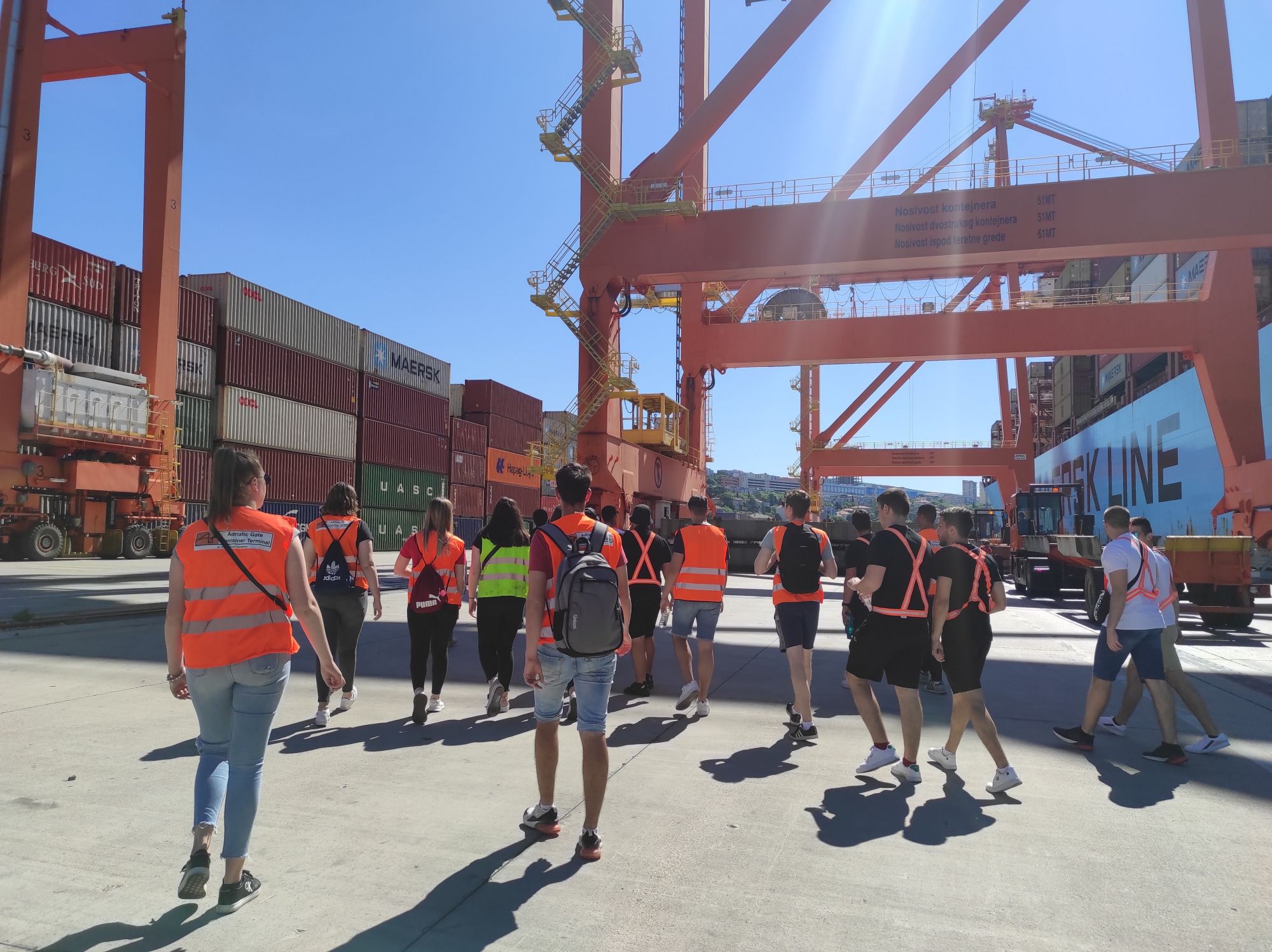 Dana 19. 5. 2022. u pratnji Erike Gržin, v. pred i Maje Šupuković, asistent, a u sklopu kolegija Suvremeni prometni sustavi, studenti 1. godine preddiplomskog stručnog studija Cestovni promet posjetili su Kontejnerski terminal Jadranska vrata. Kroz terensku nastavu studenti su imali priliku razgledati različite vrste kontejnera i upoznati se s procesom manipulacije kontejnera obalnim i portalnim dizalicama te autodizalicama. Vidjeli su postupak iskrcaja kontejnera iz broda te utovar na vozila unutarnjeg transporta AGCT-a - MAFI. Nakon obilaska terminala, studenti su obišli operativni centar, tzv. „mozak“ terminala iz kojeg se upravlja svim procesima na terminalu.