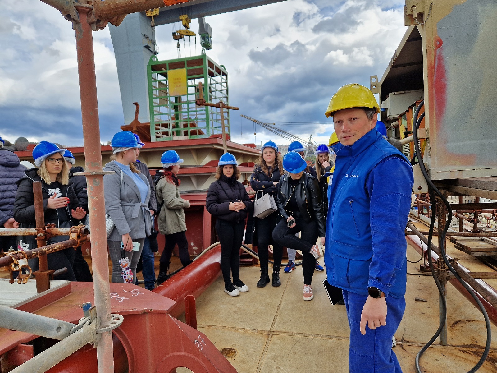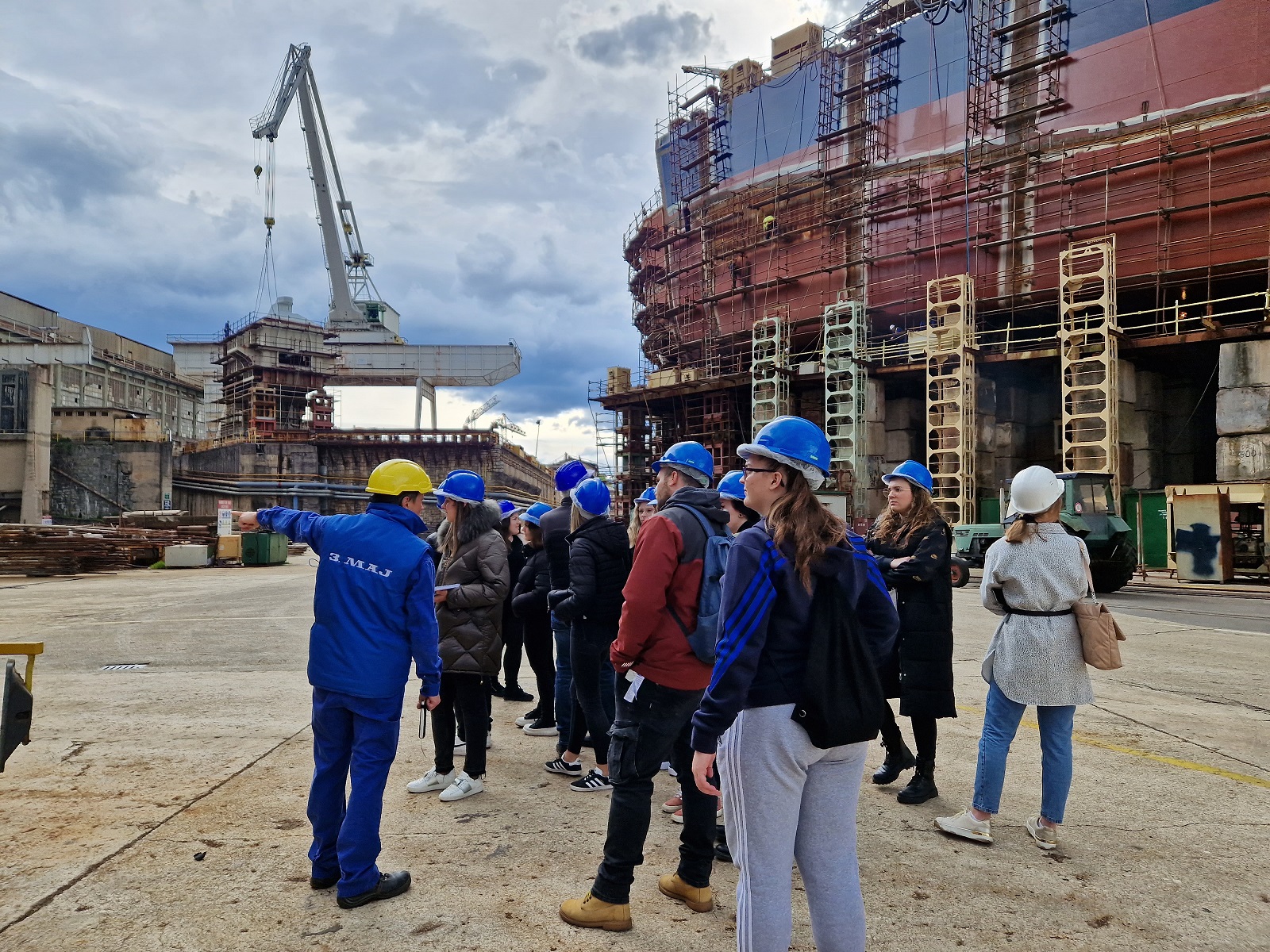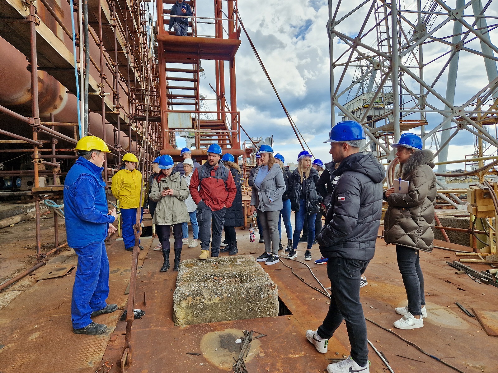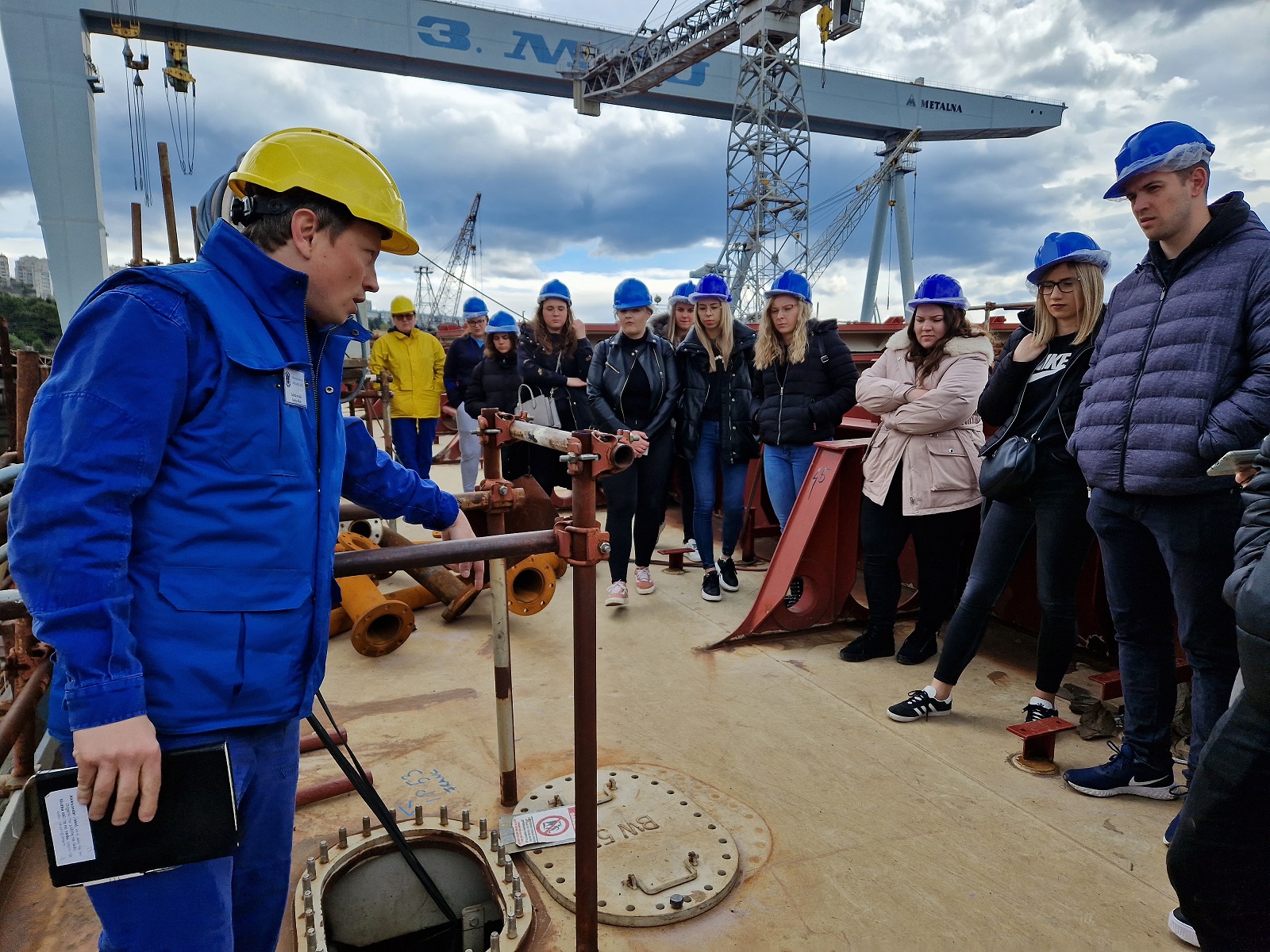Uz stručno vodstvo stručnjaka zaštite na radu Aleksandra Jokića i Antonije Vrbić studenti su imali prilike obići Brodogradilište te se uvjeriti u visoku razinu sigurnosti na radu koja tamo vlada. Osim Brodogradilišta, studenti su obišli i brod u izgradnji, što je bilo posebno zanimljivo s obzirom na posebne uvjete koji vladaju u ovoj fazi izgradnje.
