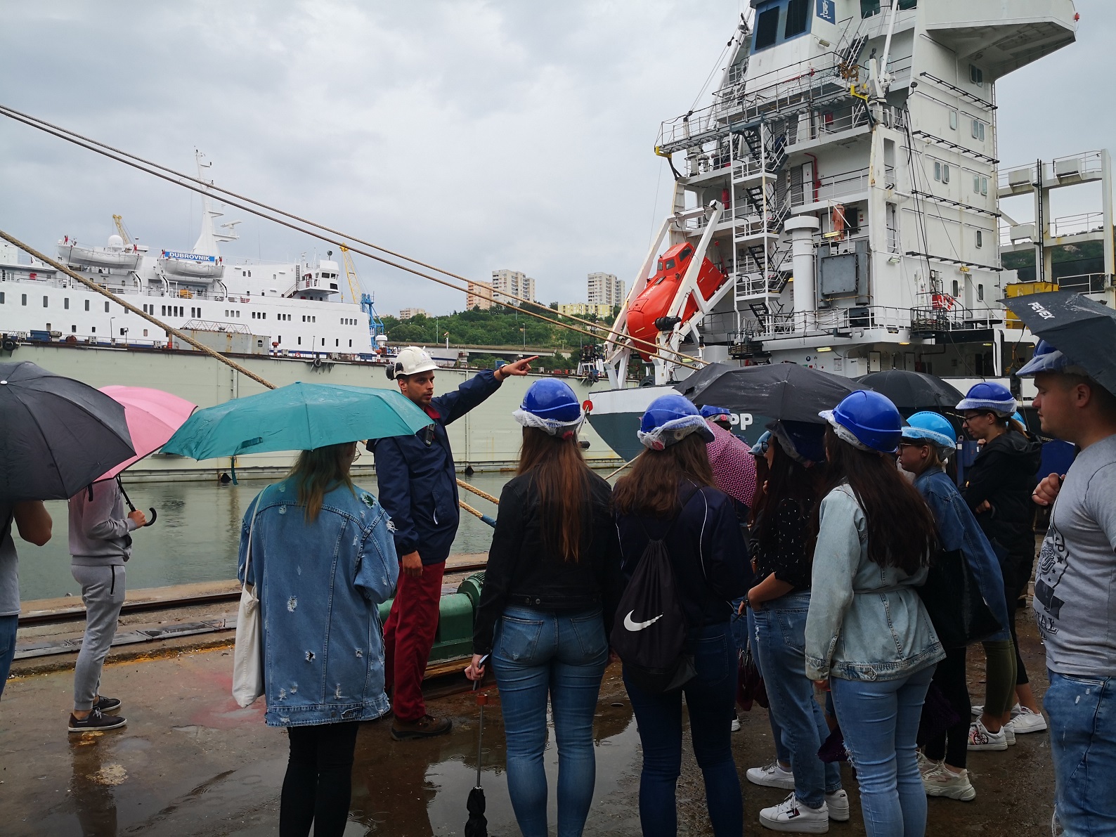 Uz stručno vodstvo voditelja zaštite na radu Gorana Bunića studenti su imali prilike obići samo brodogradilište te se uvjeriti u visoku razinu sigurnosti na radu koja tamo vlada.